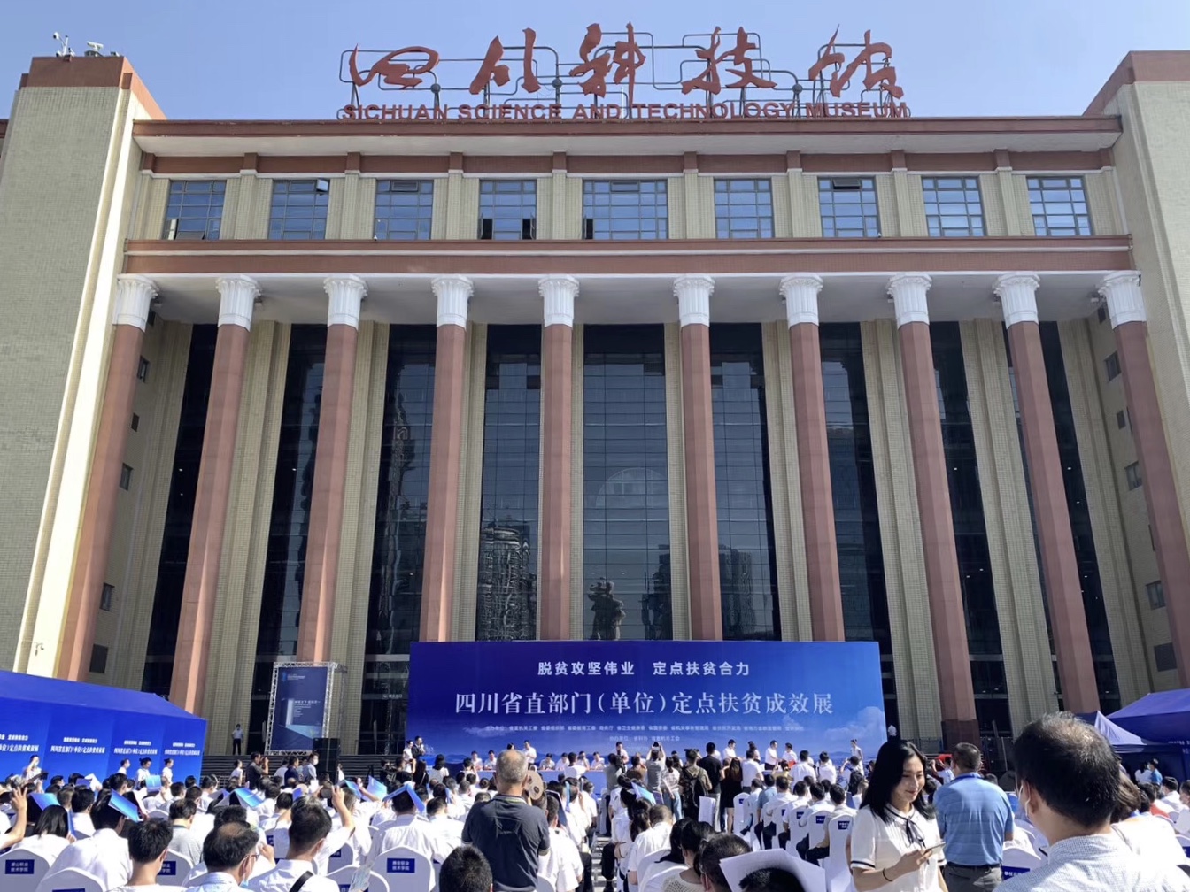 2020年7月27日,由省直机关工委、省委组织部、省委教育工委、商务厅、省卫生健康委、省国资委、省机关事务管理局、省扶贫开发局、省地方金融监管局、省供销社等单位联合举办的省直部门(单位)定点扶贫成效展暨扶贫产品展销活动在成都市四川科技馆南广场开幕。此次定点帮扶农产展销展以“脱贫攻坚伟业 定点扶贫合力”为主题,旨在集中反映2015年至2020年379个省直部门定点扶贫成效和助力脱贫攻坚的奋斗历程,展示省直部门(单位)党员干部“不忘初心 牢记使命”的责任担当。