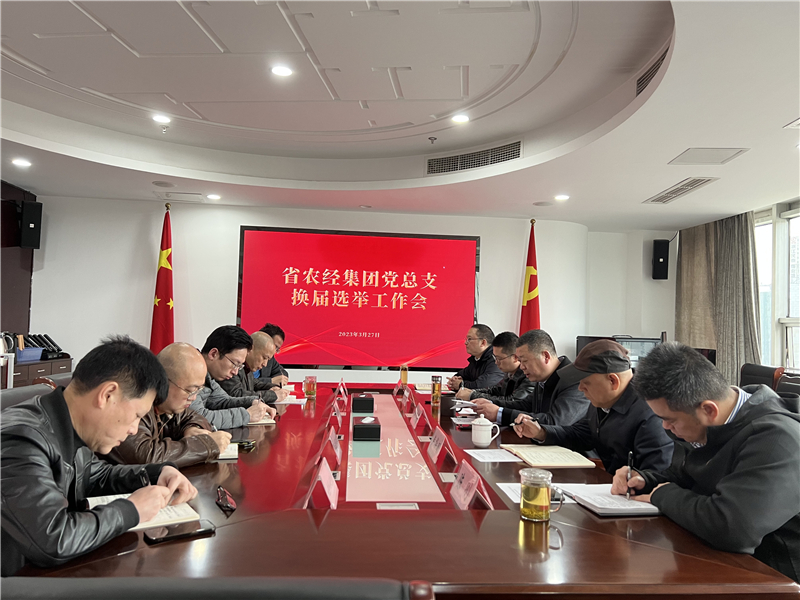 2023年3月27日上午,农经集团党总支召开换届工作会议。党总支书记鲍庆军主持会议并讲话。党总支委员、各支部书记、副书记、党务工作者参加了会议。