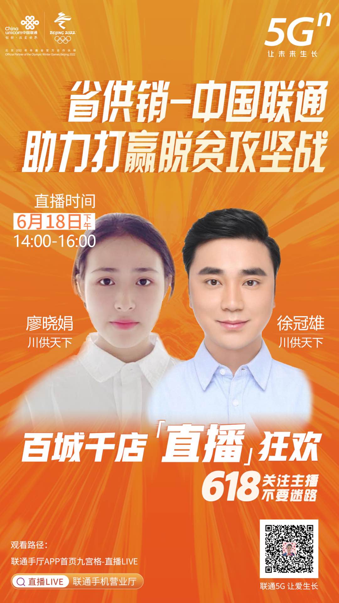 为有效推进供销系统消费扶贫工作,省供销川供天下旨在通过以购代捐活动,以线上线下相融合的方式助力打赢脱贫攻坚战,帮助贫困地区“四川扶贫”集体商标产品进城出川。为切实推进该项工作,省社与四川联通公司开展战略合作,借助中国联通APP网络直播,在2020年6月18日14:00—16:00开展“扶贫产品”网络直播营销活动。在直播...