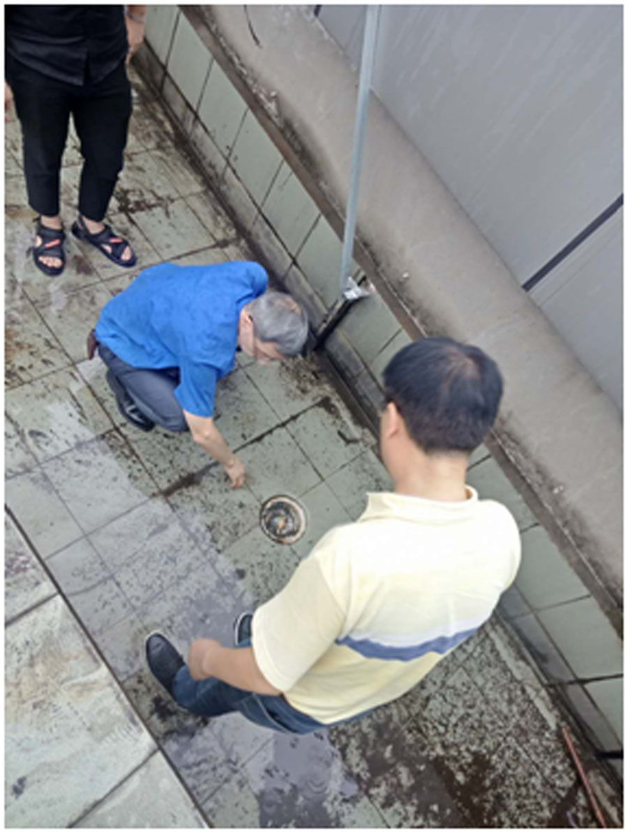 三、7楼平台下水道流水不畅。地势坤公司现场组织人员疏通,并将杂物全部清理。
