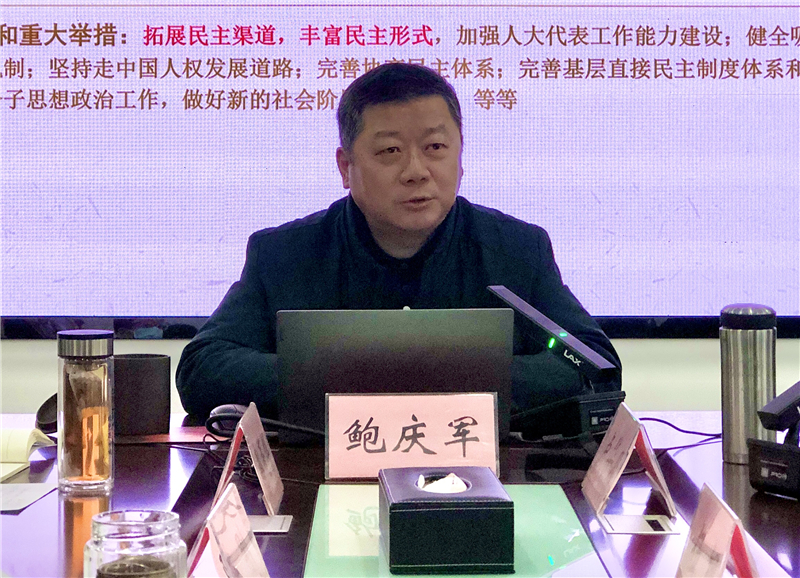 鲍庆军宣讲党的二十大精神报告的题目是《深学二十大精神、贯彻新发展理念、团结一致奋力开创农经集团新发展格局》。鲍庆军从深刻认识新时代十年变革的历史性成就和里程牌意义;深刻认识开辟马克思主义中国化时代化新境界的历史责任;深刻认识以中国式现代化全面推进中华民族伟大复兴的中心任务;深刻认识新时代新征程全面建设社会主义现代化国家的重大部署;深刻把握坚持党的全面领导和全面从严治党的部署要求;认清形势,坚定发展信心,奋力开创农经集团新的发展格局6个大的方面,用通俗易懂的语言,生动形象的事例,对二十大精神作全面宣讲和深入阐释。立足农经集团实际,分析研判了企业发展机遇,指出了存在问题,提出了解决思路,深入浅出,形象生动地给大家作了一堂站位高、内容丰富、接地气、鼓士气、增信心的二十大精神宣讲报告。